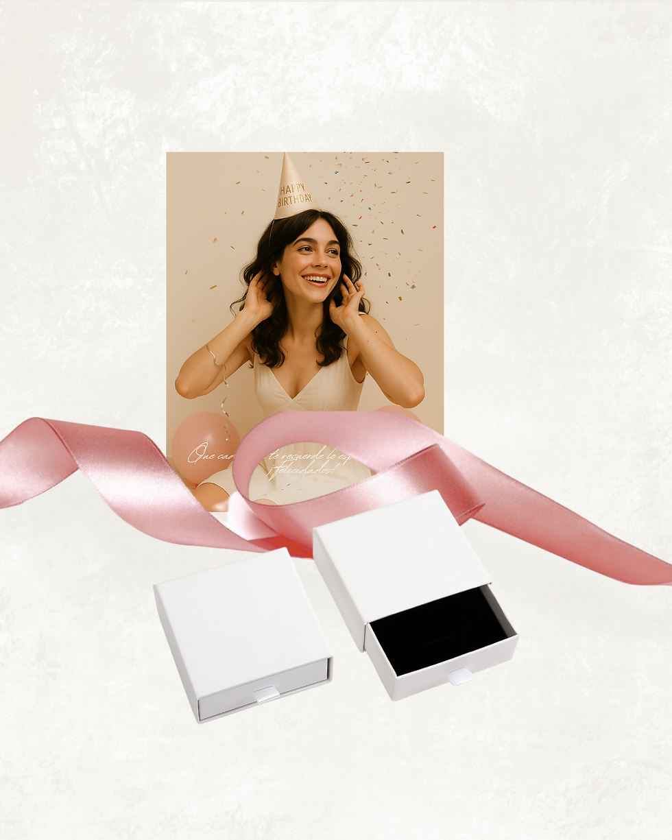 Presentamos el complemento perfecto para tus joyas. Este set de empaque premium realza la belleza y el valor de cada pieza, ofreciendo una experiencia de unboxing inigualable. Ideal para regalar o para guardar tus tesoros con el cuidado que merecen.